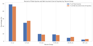 A recent analysis of injury data across Helpside’s client base revealed a serious and consistent trend: nearly 50% of all reported workplace injuries involve employees who have been on the job for one year or less. That stat isn’t just alarming—it’s actionable. New hires are significantly more likely to get hurt on the job, and their injuries often carry a disproportionate share of total claim costs.